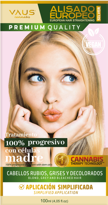 El ALISADO EUROPEO SILVER es el Alisado Progresivo de nueva generación que surge en España desarrollado con tecnología patentada de Cannabis sativa & ácido glioxílico.